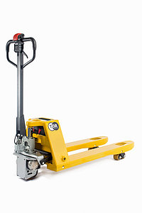 удобный подход к паллетам, поддонам и грузам в упаковке за счет малого радиуса разворота и переменной высоты каретки с вилами до 200 мм;