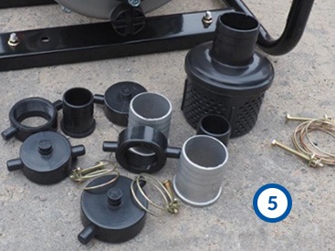 - Мотопомпы укомплектованы фильтр-сеткой, переходниками, хомутами для крепления шлангов и заглушками.