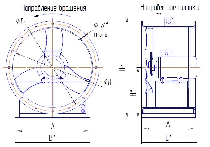 | № | A | A1 | B | Д | Д1 | d* | H* | H1* | E*max | n |