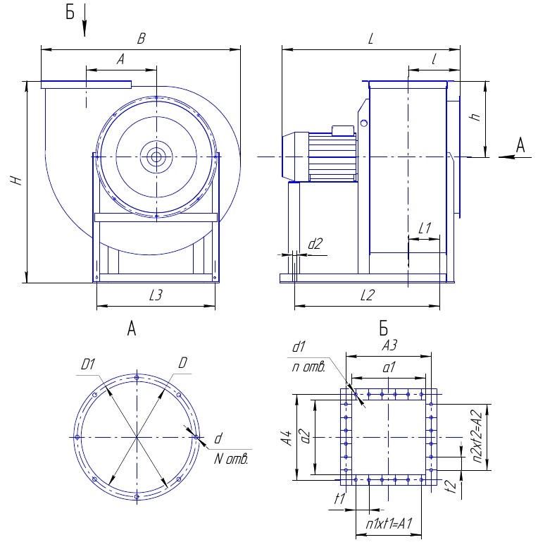 | B | A | A1 | A2 | A3 | A4 | a1 | a2 | Lmax | l | h | H | L1 | L2 | L3 | D | D1 | d | d1 | d2 | t1 | t2 | |||||