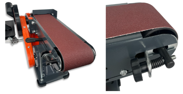Шлифовальная лента для шлифовки и заточки длинных кромок, снятия фасок, обработки плоских поверхностей. Устанавливается на два ролика: ведомый (для центровки и натяжения ленты) и приводной (приводится в движение двигателем).