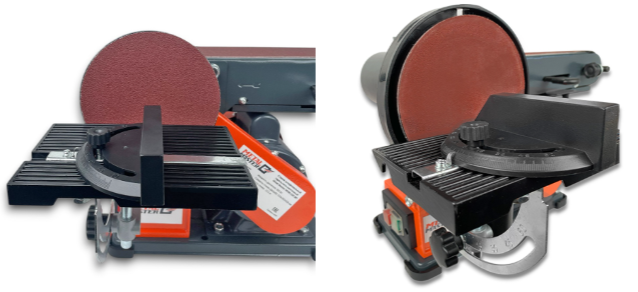 - На ленточном шлифовальном узле в качестве шлифовального инструмента применяют бесконечную абразивную шлифовальную ленту, натянутую на двух барабанах. На дисковом шлифовальном узле в качестве шлифовального инструмента применяют наклеенный на прижимной диск абразивный шлифовальный лист Ø150 мм.