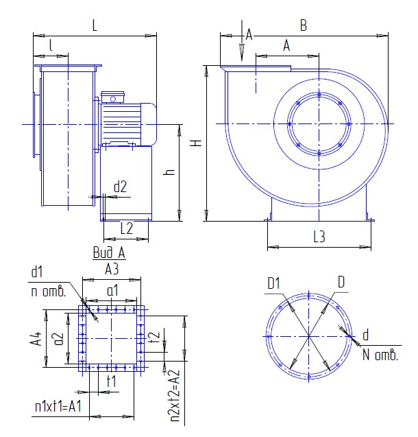 Х1 - типоразмер (номер вентилятора) - размер рабочего колеса, измеряемый в дм (2,5; 3,15; 3,5; 4; 4,5; 5; 5,5);