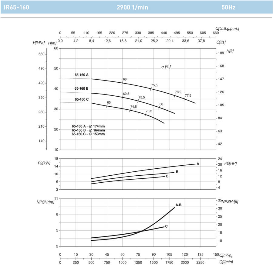 Параметры насоса с двигателем ~ 2900 об / мин.