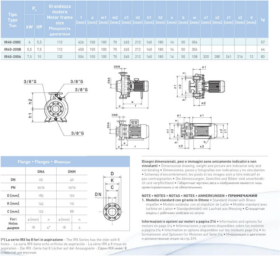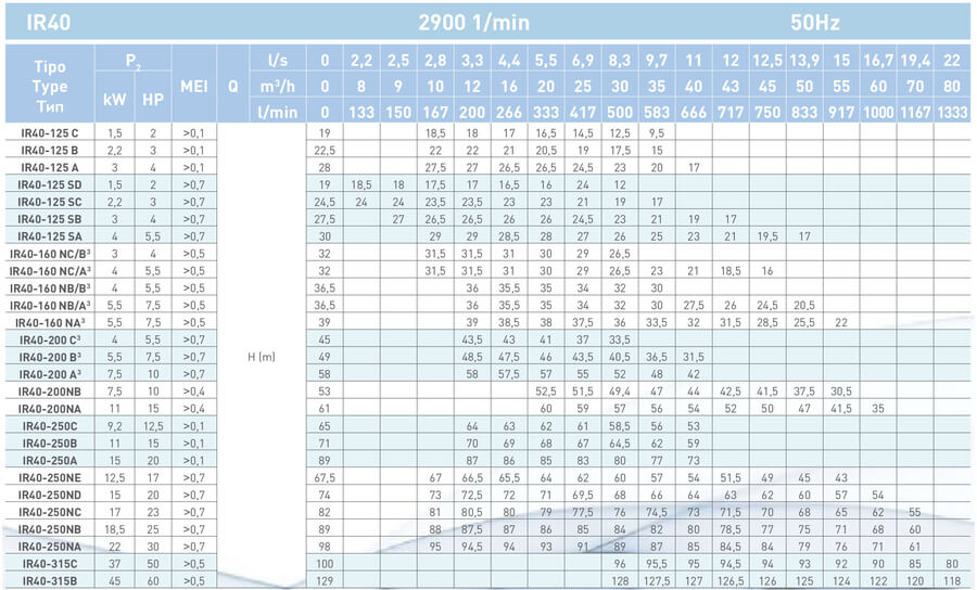 Номинальная частота вращения IR - 2900 об/мин, IR4P - 1450 об/мин.