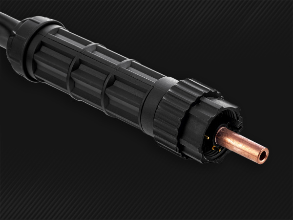 безопасность работы. Два пин-разъёма в рукоятке обеспечивают безопасность при смене расходных частей: плазмотрон не включится, пока не будет установлена защитная насадка.