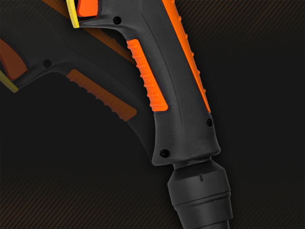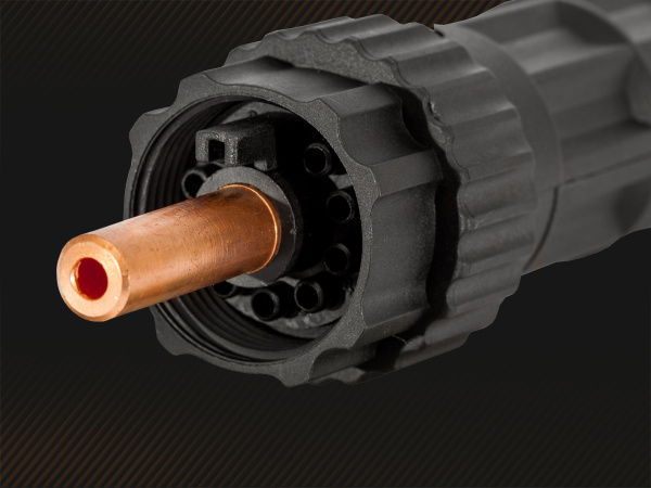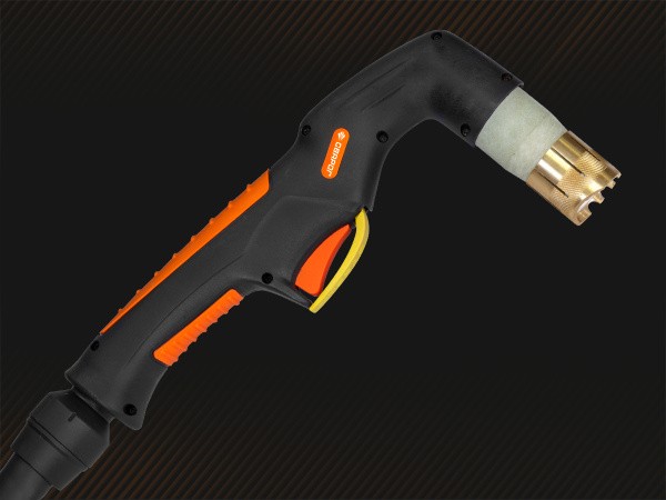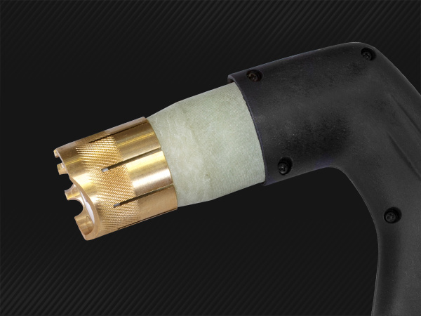 безопасность работы. Два пин-разъёма в рукоятке обеспечивают безопасность при смене расходных частей: плазмотрон не включится, пока не будет установлена защитная насадка.