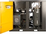 Низкий уровень шума также достигается применением шумопоглощающих панелей, установкой электродвигателя и винтового блока на виброопорах.