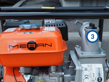 - Заливная горловина.Перед первым пуском достаточно залить воду в корпус мотопомпы, воздух во всасывающем шланге она прокачает сама.