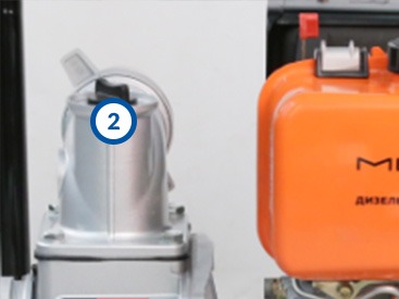 - Заливная горловина. Перед первым пуском достаточно залить воду в корпус мотопомпы, воздух во всасывающем шланге она прокачает сама.