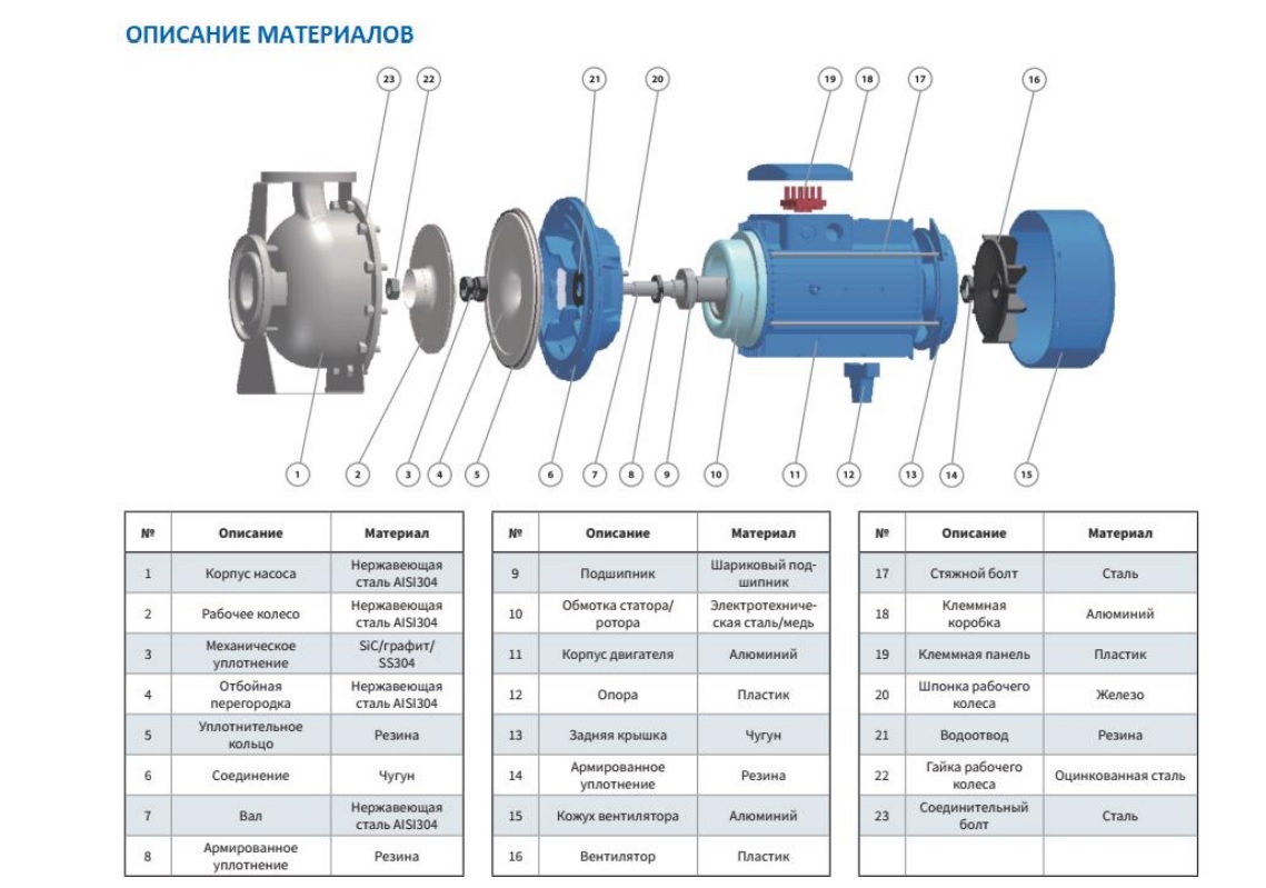 | Материал корпуса насоса | Нержавеющая сталь AISI/SS 304/08Х18Н10 |