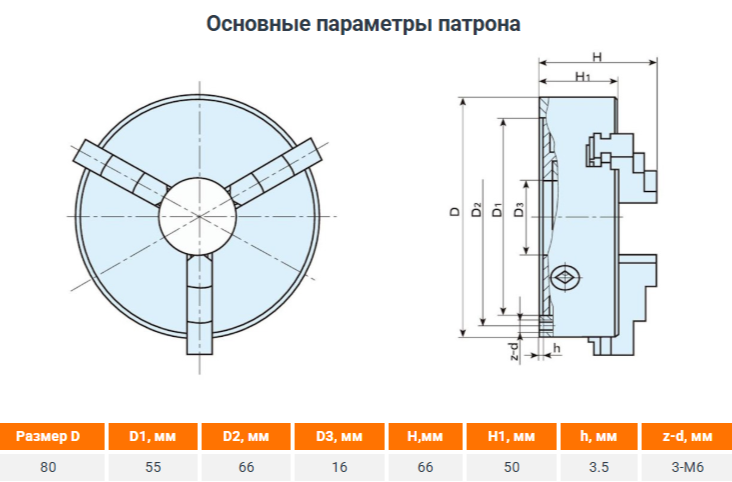 Токарный патрон Metal Master 80мм 3-х кулачковый предназначен для работы с цилиндрическими, трех-, четырех- и шестигранными заготовками, имеющими плоскую и резьбовую структуру.