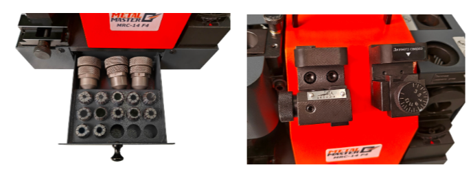 - Узел заточки фрез может обрабатывать двугранные, четырехгранные и шестигранные фрезы.
