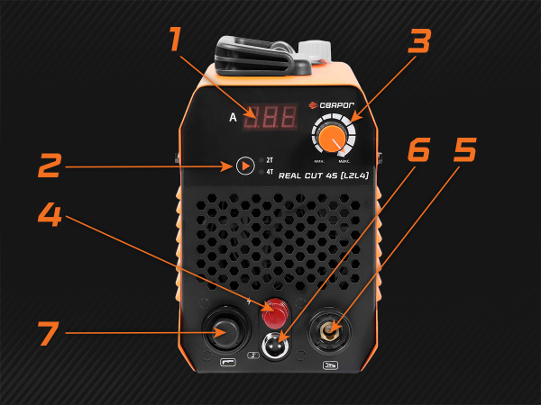 REAL CUT 45 (L2L4) — новая модель аппарата для воздушно-плазменной резки серии REAL, созданная для стабильной и точной работы при резке металла толщиной до 20 мм*. Теперь аппарат оснащён дежурной дугой, что позволяет резать окрашенные, ржавые и загрязнённые поверхности без предварительной зачистки. Аппарат обладает высокой производительностью, при этом остается компактным и легким, что делает его более удобным для повседневной работы.