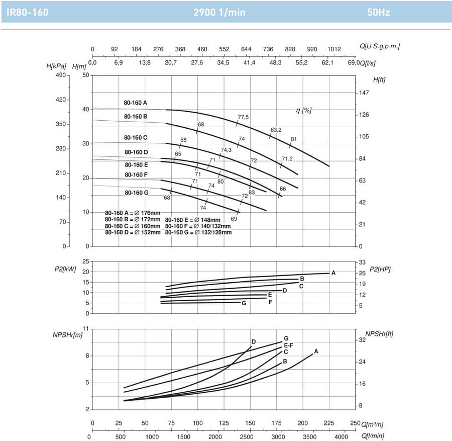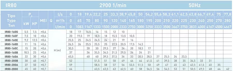Параметры насоса с двигателем ~ 2900 об / мин.