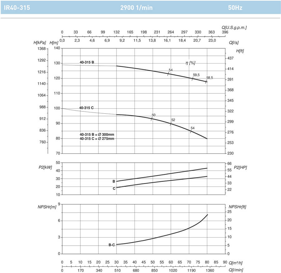 Параметры насоса с двигателем ~ 2900 об / мин.